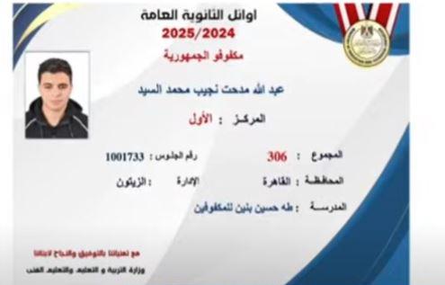 كشف عبد الله مدحت نجيب، الحاصل على المركز الأول على مستوى الجمهورية في فئة المكفوفين بامتحانات الثانوية العامة، عن تفاصيل مشواره الدراسي وتمسكه بتحقيق طموحاته.