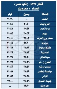 أعلنت الهيئة القومية لسكك حديد مصر عن تعديل جداول تشغيل بعض القطارات على خط محرم بك / الحمام. وذكرت الهيئة أن هذه التعديلات ستدخل حيز التنفيذ اعتبارًا من يوم الجمعة، 12 سبتمبر 2025.