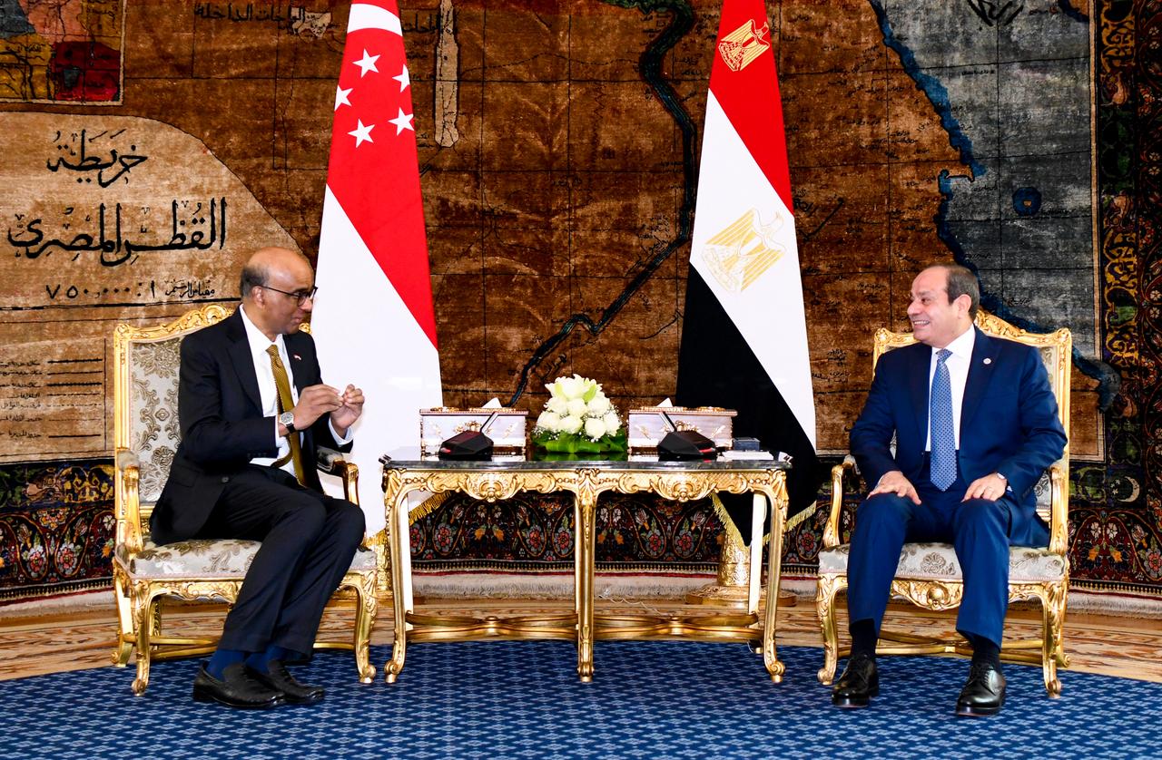 كما رحب الرئيس السيسي بزيارة الرئيس السنغافوري، مؤكدًا أنها تمثل دفعة جديدة للعلاقات الثنائية التي تقترب من إتمام ستة عقود من التعاون المثمر والاحترام المتبادل. وذكّر بأن مصر كانت أول دولة عربية وإفريقية تعترف باستقلال سنغافورة عام 1965، لتؤسس لعلاقات صداقة قوية ما زالت تتطور حتى اليوم.