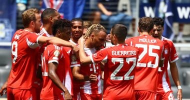 جمال موسيالا، توماس مولر، كينجسلي كومان، أليسي، جوناثان تاه، وساشا بوي، بعد مشاركتهم في الفوز الكاسح على أوكلاند سيتي النيوزيلندي بنتيجة 10-0، في رقم قياسي جديد بتاريخ البطولة.