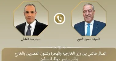 أجرى الدكتور بدر عبد العاطي، وزير الخارجية والهجرة، اتصالاً هاتفياً اليوم الثلاثاء 13 يناير 2026 مع السيد حسين الشيخ، نائب رئيس دولة فلسطين، لبحث آخر مستجدات القضية الفلسطينية والتحركات الدبلوماسية الرامية لتفعيل خطة السلام المقترحة من الإدارة الأمريكية.