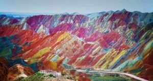 • جبال قوس قزح (الصين): في حديقة “تشانغيه دانشيا” الجيولوجية، تمتد هذه الجبال التي تبدو كلوحة فنية، حيث تتكون من طبقات صخرية ملونة بألوان زاهية كالأحمر والبرتقالي والأصفر والأزرق. وقد تشكلت هذه الجبال على مدى 24 مليون سنة بفعل الحركات التكتونية.