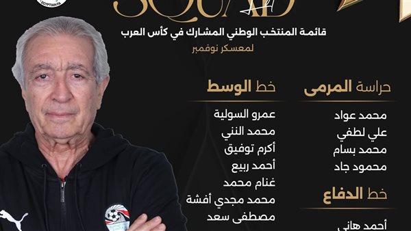 أعلن الجهاز الفني للمنتخب الوطني المشارك في كأس العرب بقيادة حلمي طولان، قائمة اللاعبين الذين سيدخلون معسكرًا مغلقًا غدًا الاثنين، استعدادًا لمواجهتي الجزائر ضمن المرحلة الأخيرة من خطة الإعداد لبطولة كأس العرب المقرر إقامتها في قطر مطلع الشهر المقبل.