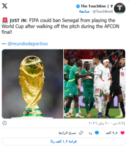 زلزال في “فيفا”.. تهديد باستبعاد السنغال من كأس العالم 2026 بعد واقعة “الانسحاب المؤقت” في نهائي أفريقيا