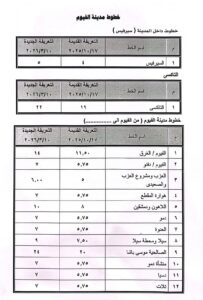 أعلنت محافظة الفيوم تعريفة الركوب الجديدة لخطوط سير السرفيس والتاكسي وسيارات الأجرة العاملة على الخطوط الداخلية والخارجية بين مراكز المحافظة، والمحافظات الأخرى، وذلك بعد إعلان لجنة التسعير التلقائي للمنتجات البترولية، تحريك أسعار البنزين والسولار، بدءاً من صباح اليوم الثلاثاء 10 مارس 2026.