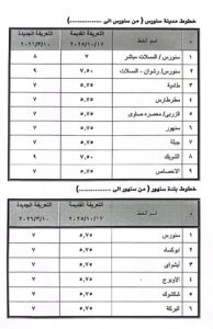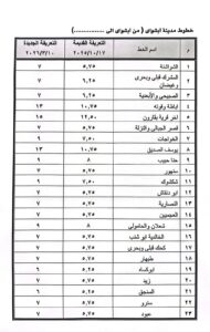 ووجه محافظ الفيوم، مدير عام المواقف، بالإعلان عن التعريفة الجديدة في مكان واضح بجميع مواقف السيارات بدائرة المحافظة، من خلال وضع لافتة مبين بها خطوط السير وقيمة الأجرة المقررة لكل خط، وكذا وضع استيكرات موضح به تعريفة الركوب وخط السير وعدد الركاب يتم لصقها على الزجاج الأمامي والخلفي لسيارات الأجرة والسرفيس، لتعريف المواطنين بتعريفة الركوب الرسمية، وتطبيق القانون بكل حزم على المخالفين.