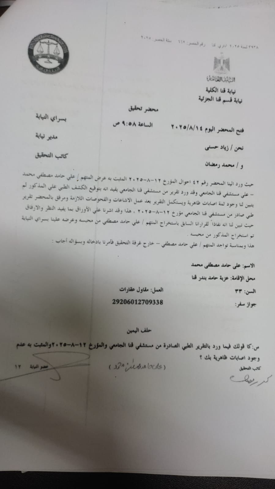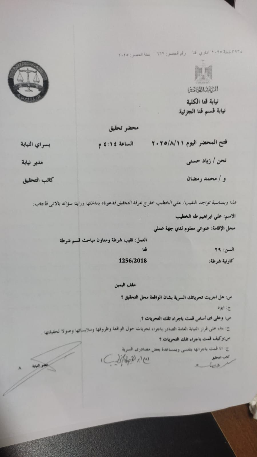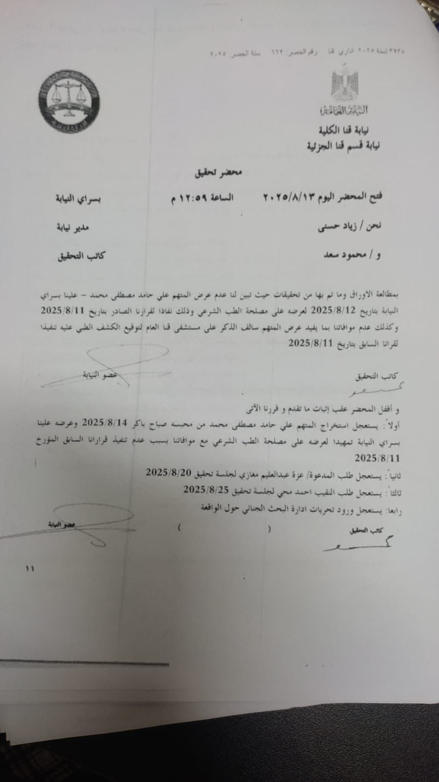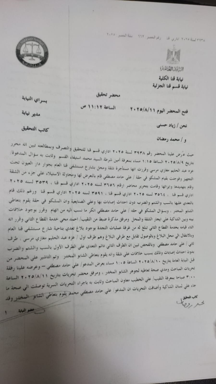- السيد المستشار شريف عمرو – المحامي العام الأول لنيابات قنا