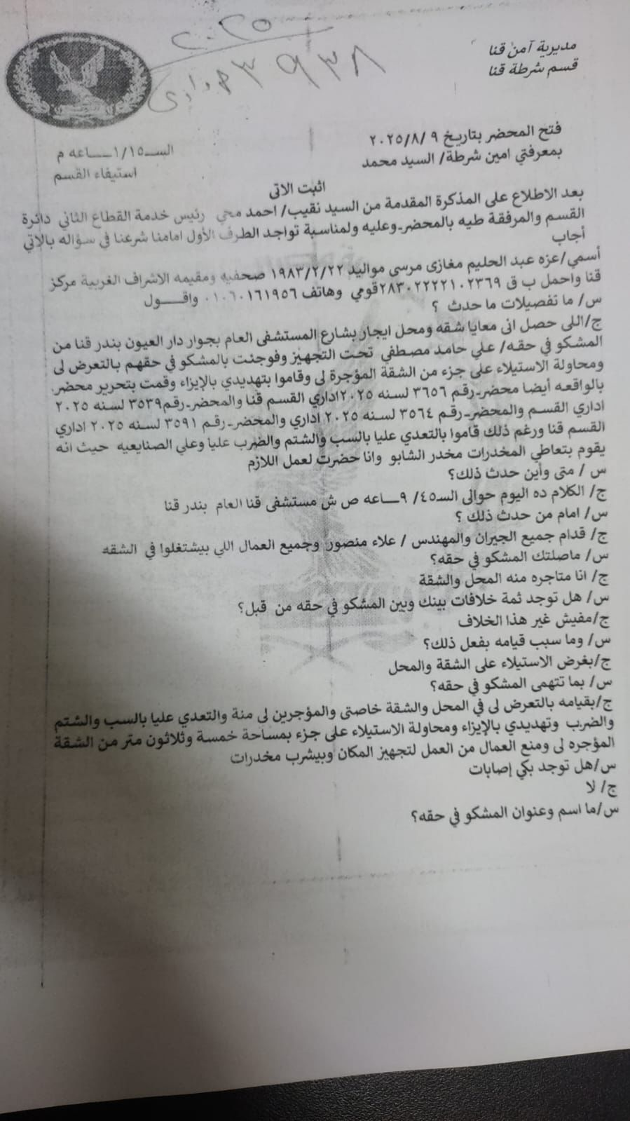 فذلك الهارب من حكم قضائي واجب النفاذ، المدعو “ع. ح. م. م“، والمتورط في جريمة سرقة سابقة، كان نفسه مالك الحيازة التي أجرها للصحفية عزة مغازي. لكنه ما لبث أن خطط، بمعاونة آخرين، للاستيلاء على حقها دون أي مسوّغ قانوني.