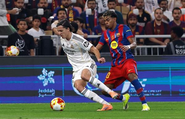 حسم التعادل الايجابي بين ريال مدريد وبرشلونة بهدفين مقابل هدفين2-2 ، فى الشوط الاول ، على ملعب الجوهرة بمدينة جدة بالمملكة العربية السعودية، في نهائي كأس السوبر الاسباني 2025 .