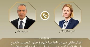 تلقى الدكتور بدر عبد العاطي، وزير الخارجية والهجرة وشئون المصريين بالخارج، اتصالاً هاتفياً يوم الجمعة 7 نوفمبر من كايا كالاس، الممثلة العليا للشئون الخارجية والسياسة الأمنية للاتحاد الأوروبي. تركز الاتصال على بحث الشراكة الثنائية بين مصر والاتحاد الأوروبي، إضافة إلى التطورات الإقليمية والدولية ذات الاهتمام المشترك.