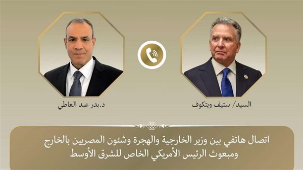 أجرى وزير الخارجية والهجرة المصري، بدر عبد العاطي، اليوم السبت، اتصالًا هاتفيًا مع “ستيف ويتكوف” مبعوث الرئيس الأمريكي الخاص للشرق الأوسط، في إطار التنسيق والتشاور المتواصل بين القاهرة وواشنطن بشأن المستجدات المتسارعة والخطيرة التي تشهدها المنطقة.